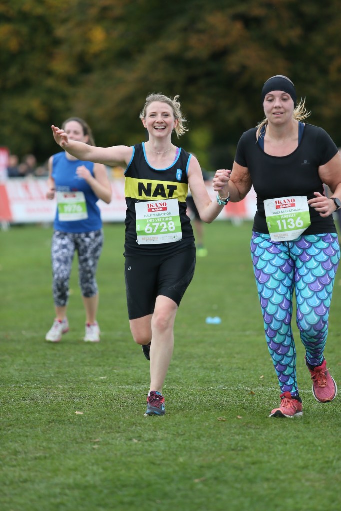 I’d started thinking about how I would fit training in around my new hours, but this definitely hadn’t included a half marathon in the middle of the week! Sole-charge emergency work is an exciting step-up for me, and my absolute priority had to be performing as well as I possibly could. However, after finding my feet with some unusually quiet first shifts I decided to at least pack my kit – just in case. Having tempted fate massively (spot the new girl) I braced myself for a night of bleeding wounds, multiple cases of haemorrhagic gastroenteritis and most likely a caesarean section or two. But amazingly the night shift Gods were smiling on me and for the first time in the history of vet’s weekends we had not a single patient in the hospital overnight. So, I did my morning handover jogging on the spot in full race gear eating my pre-run banana as the rest of the staff (normal people) rolled their eyes at the crazy running girl and went home to bed.