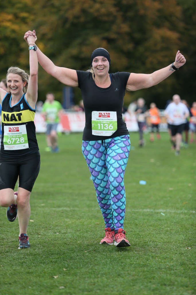 Those last few miles were intense for both of us. When you’ve never run with someone before it can be hard to know when they need to hear that it’s ok slow down, and when they need you to say “No, keep pushing, you’ve got this”.  Izzy had suffered an anxiety attack coming in to the finish last year, so as we rounded the corner we had to balance that rush of emotion and adrenaline. Hand in hand, we slowed our pace and focused on breathing in a steady rhythm. And we crossed that line grinning from ear to ear, totally overwhelmed by what it had meant to both of us individually, and what we’d achieved together. We’d been on this whole 13.1 mile journey side by side, travelled all those miles using just our bodies, and shared so many things. But next time we’re definitely meeting up for a coffee. And a cake. Like normal people.